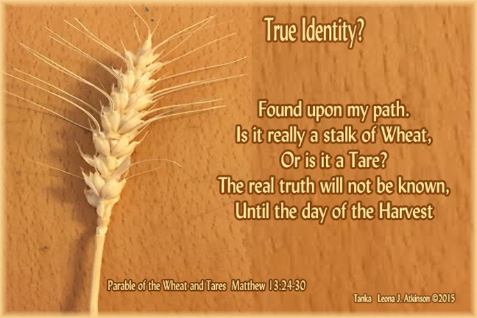 Today as I was walking on my College Campus going to an appointment with my academic counselor, I happened to look down and noticed this, what I thought to be, stalk of wheat. Just laying there on the footpath, all by itself, and not a wheat field in sight. Quite odd, I thought. I picked it up to take home, quite excited because I had never had the chance to have a stalk of wheat before.:) But….then I got to thinking about the parable in Matthew 13:24-30 and I began to wonder if it might be a tare…..Something to consider….and to ponder, why it happened to be right in my path today…..?? Perhaps it’s purpose was only to inspire me to write this poem 🙂