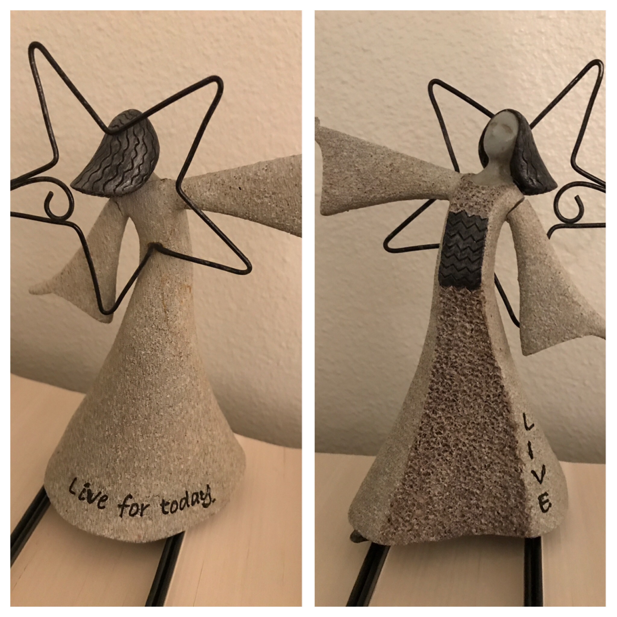 While in a Thrift Store today I happened to see a little angel figurine and her message spoke to me loud and clear! Inscribed on her were the words “Live” “Live for today.”