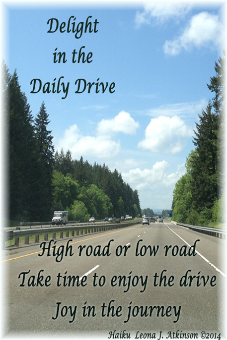 Posted in Haiga, Haiku, Haiku Horizons Weekly Prompt, July 2014 Delight in the Daily Drive Posted on July 14, 2014 by Leonas Lines Original Poetry and Photograph by Leona J. Atkinson ©2014 Haiku Horizons Week 21–Prompt: Drive