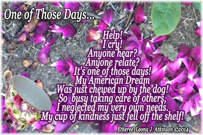 Posted in Etheree, June 2014 One of Those Days… Posted on June 6, 2014June 7, 2014 by Leonas Lines Original Photographs and Poetry by Leona J. Atkinson 2014